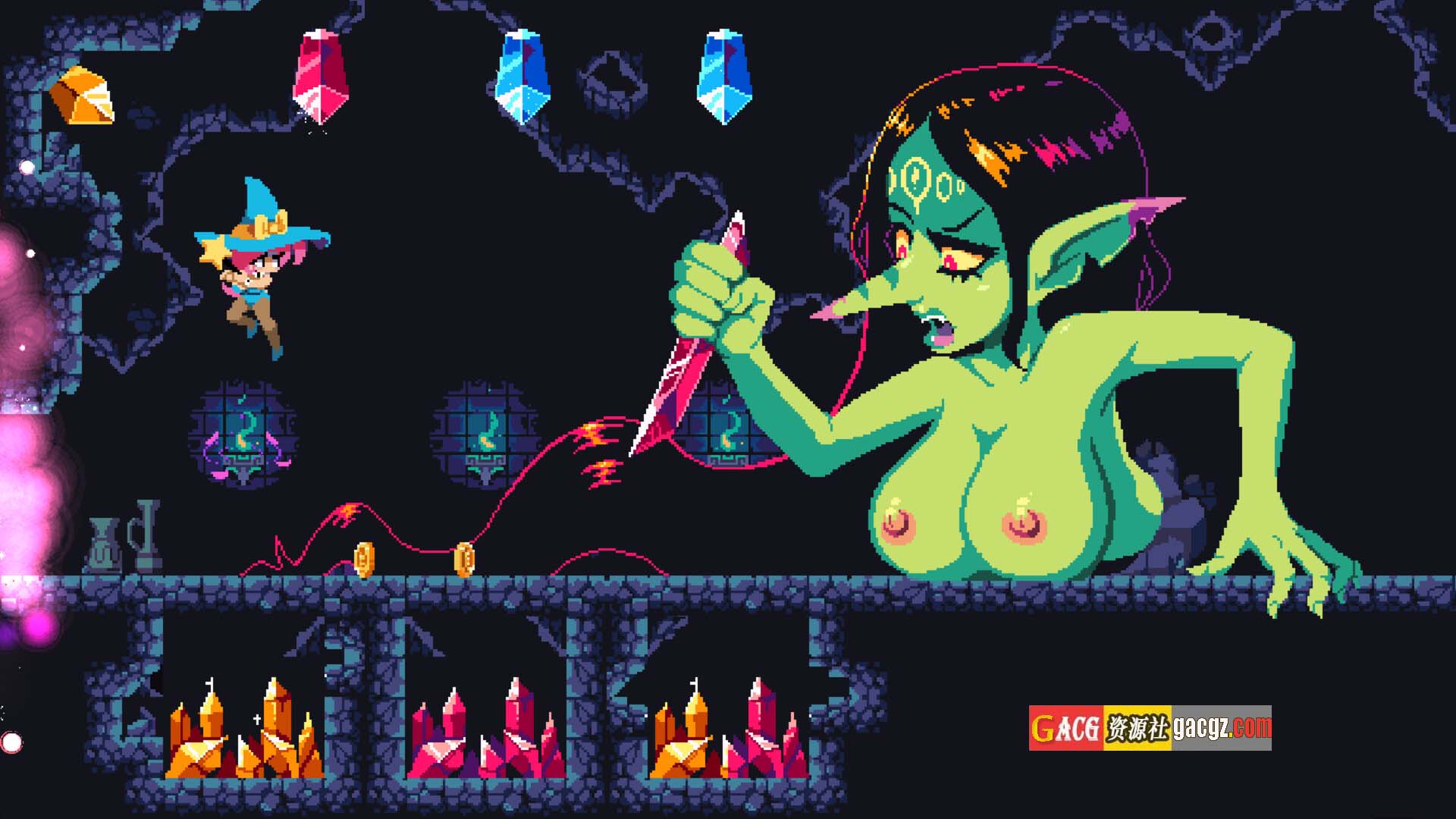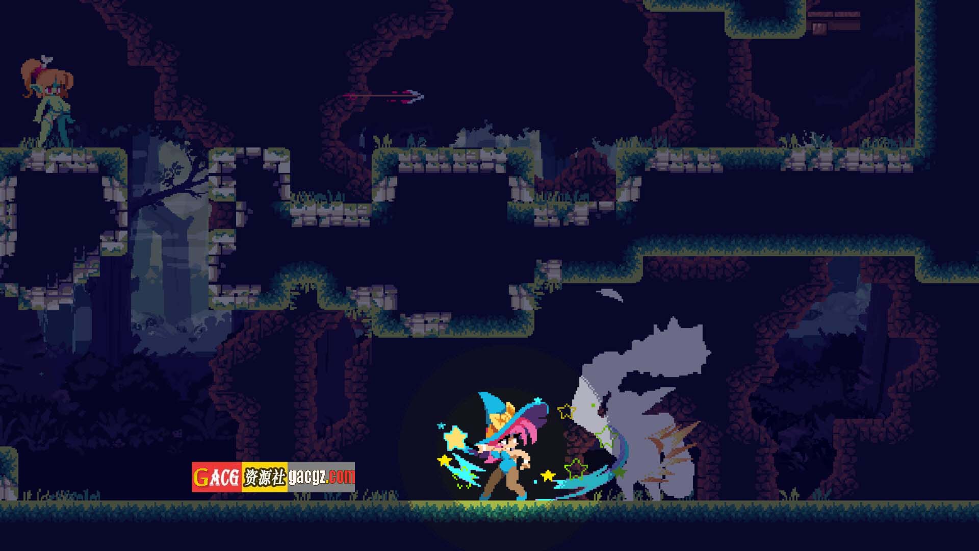 《翻转女巫》是一款典型的横版动作游戏(Action Game),玩家需要在二维平面上完成各种挑战。游戏的操作简单易上手,但随着关卡的推进,难度逐渐增加,考验着玩家的反应力和策略思维。