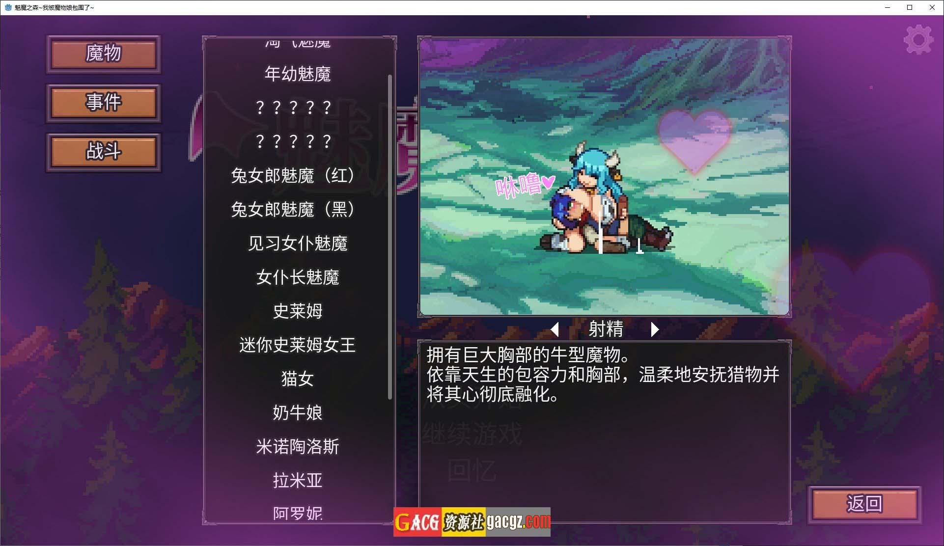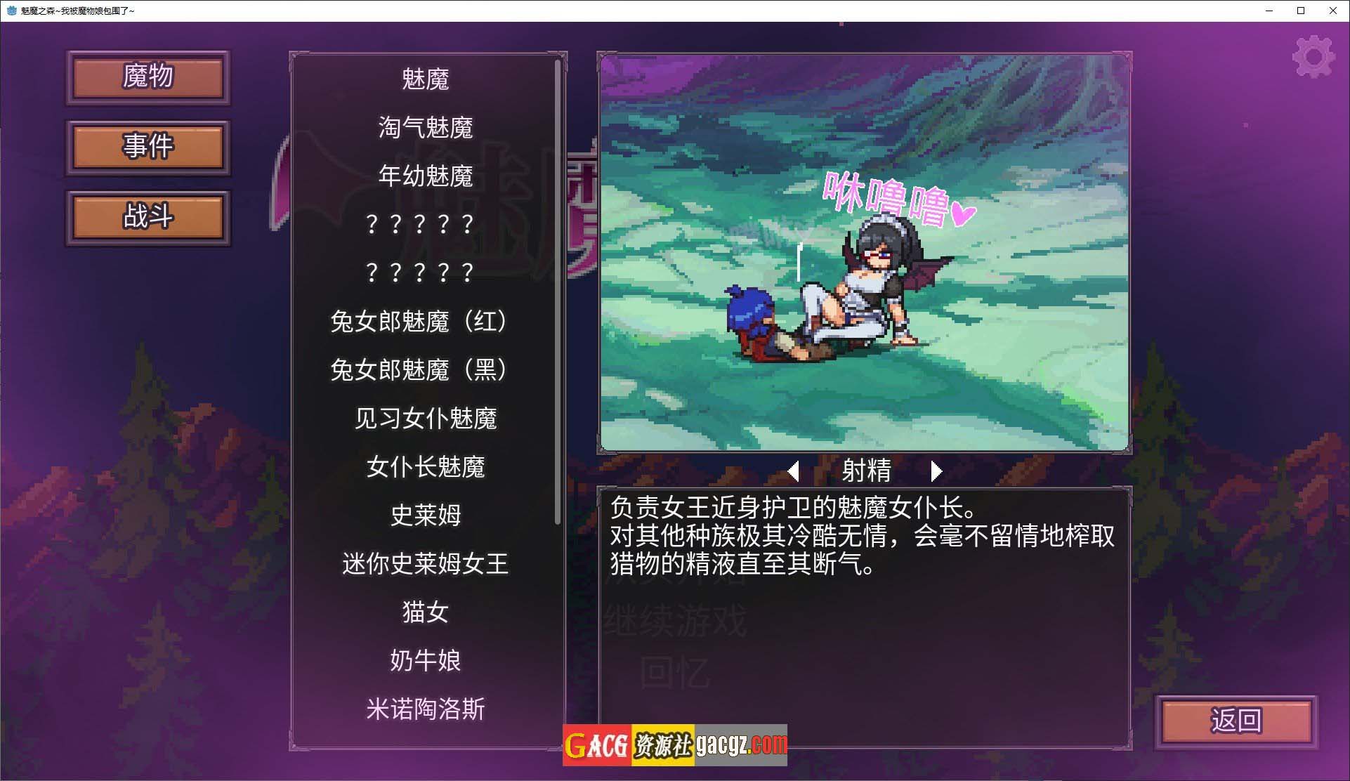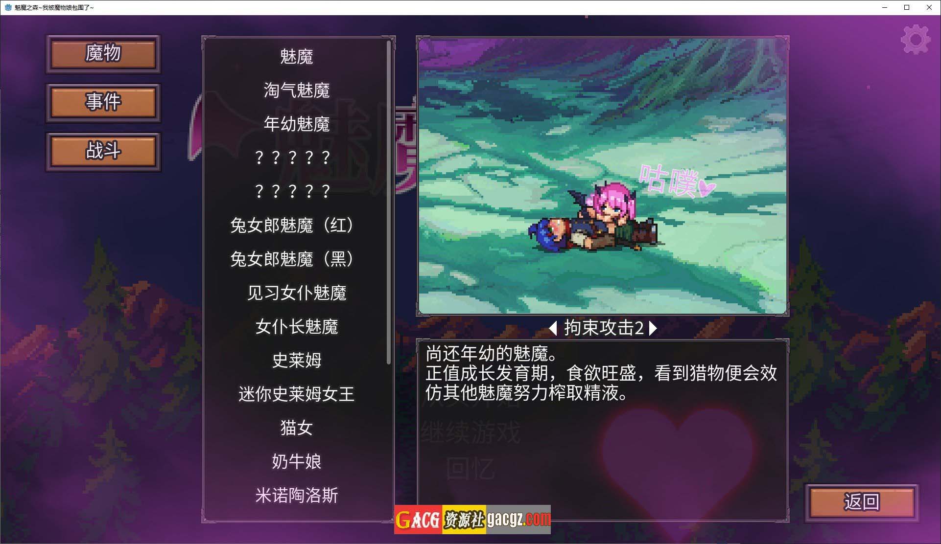 《魅魔之森~我被魔物娘包围了~V1.03 官方中文步兵版+存档》是一款结合了策略、卡牌收集与肉鸽元素的像素风游戏。游戏以奇幻的“魔物娘”为主题,玩家将在一个充满魔法与神秘的森林世界中,与各种可爱的魔物娘角色互动,并通过策略战斗来解决遇到的各种挑战。